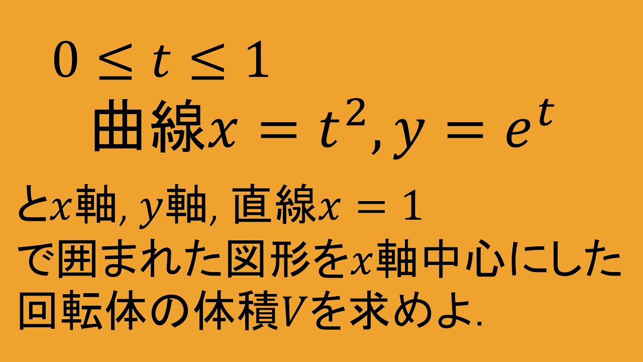 xy平面 (a>0)で囲まれた体積Vを求めよ。