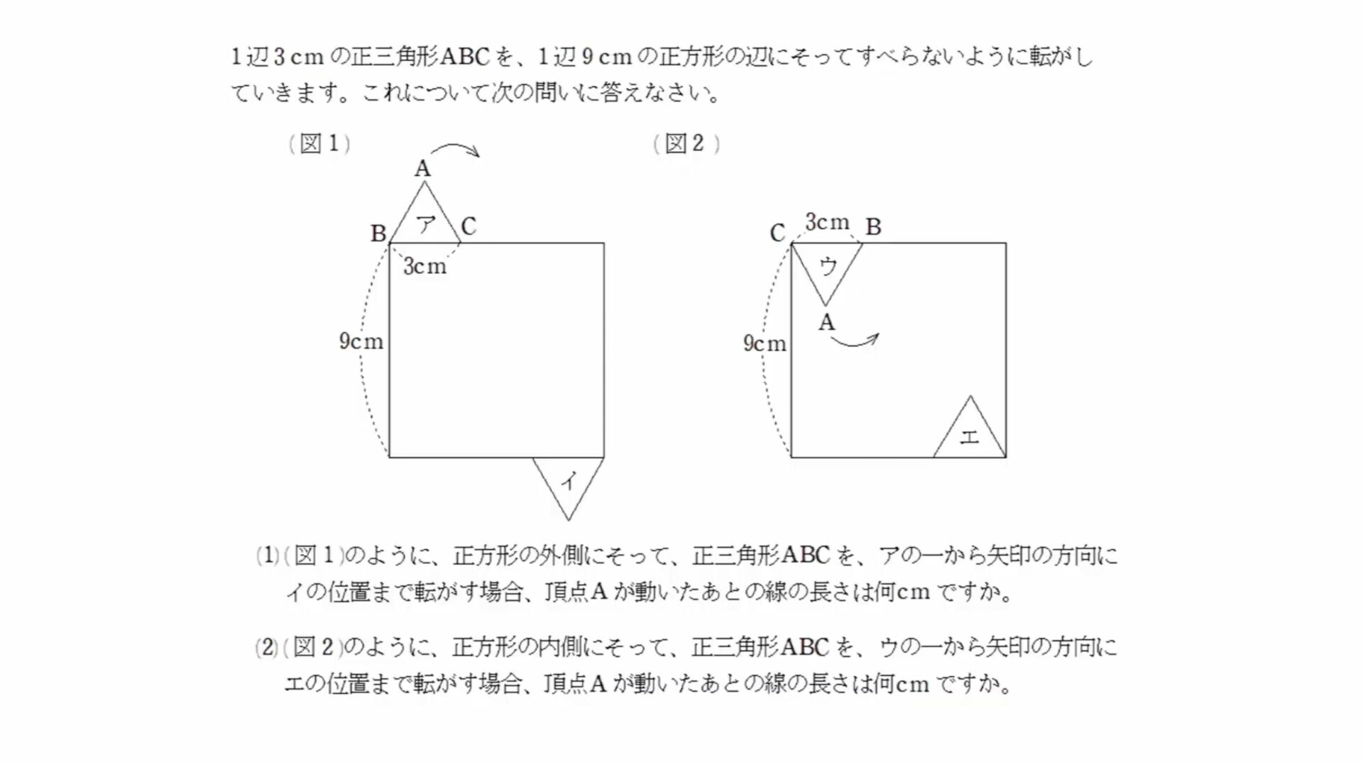 (2) 頂点Aが動いたあとの線の長さは何cmですか。