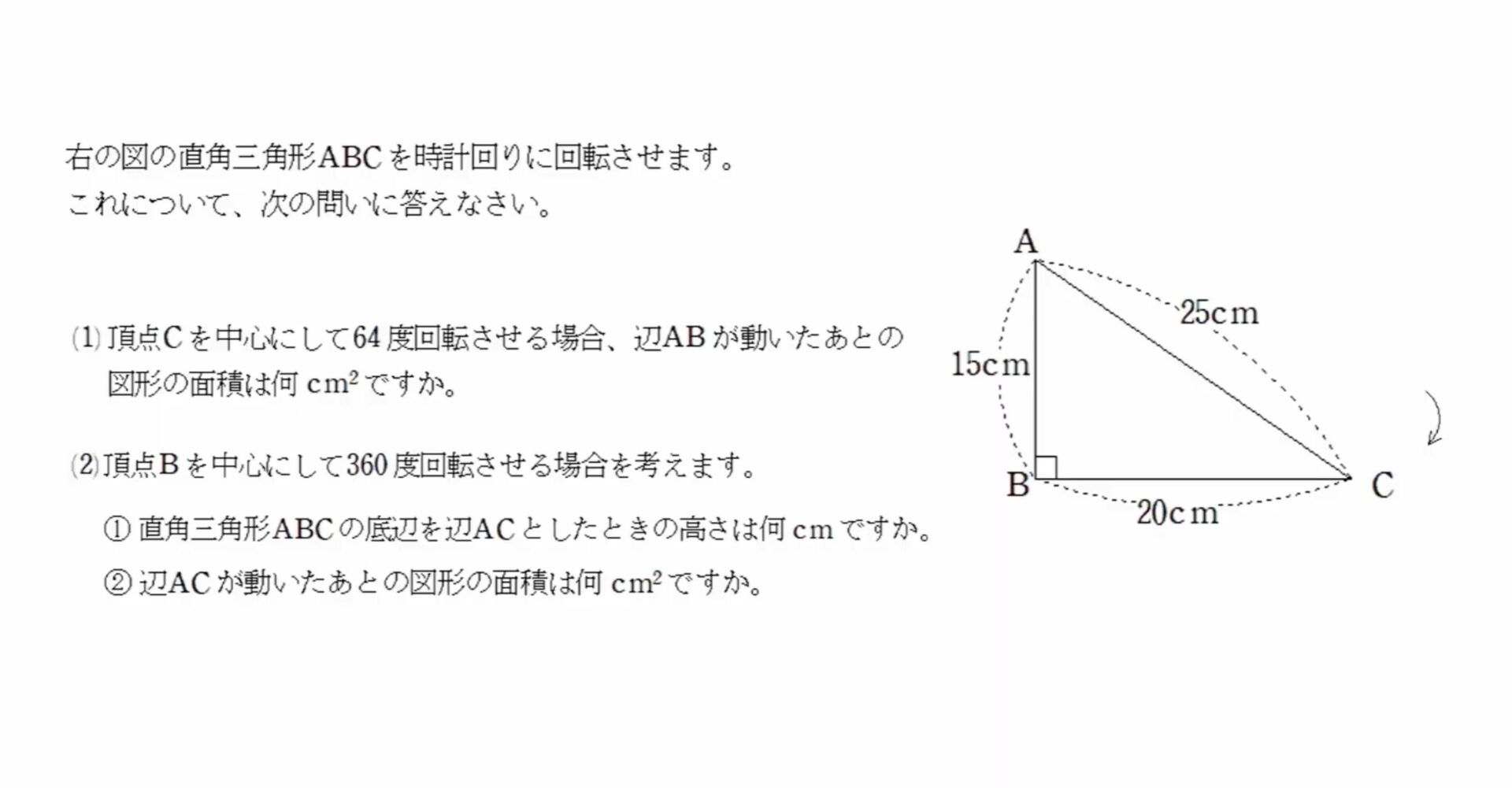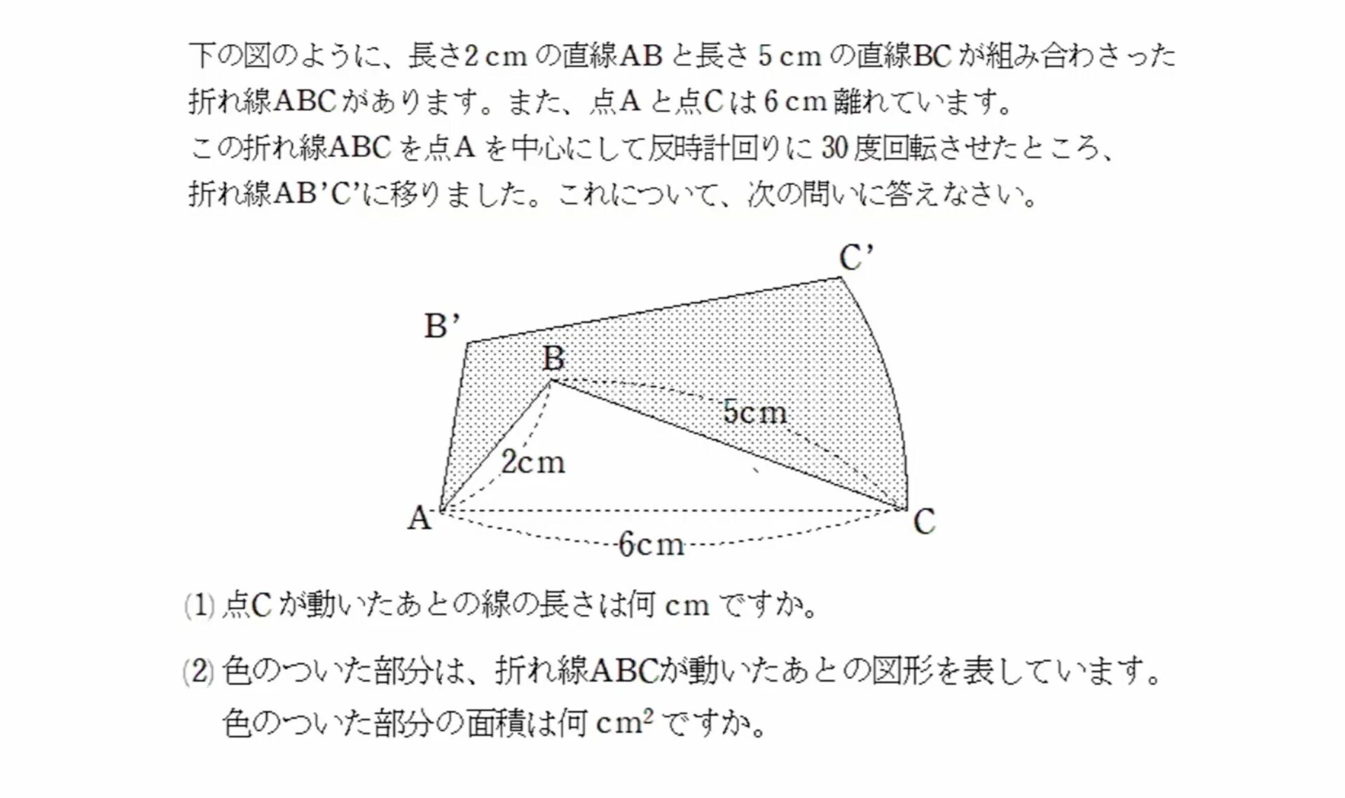 (2) 頂点Aが動いたあとの線の長さは何cmですか。