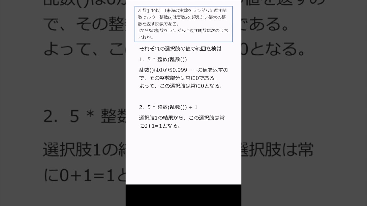 乱数カッコは0以上1未満の実数をランダムに返す関数であり、整数カッコ xは実数xを超えない最大の整数を返す関数である。