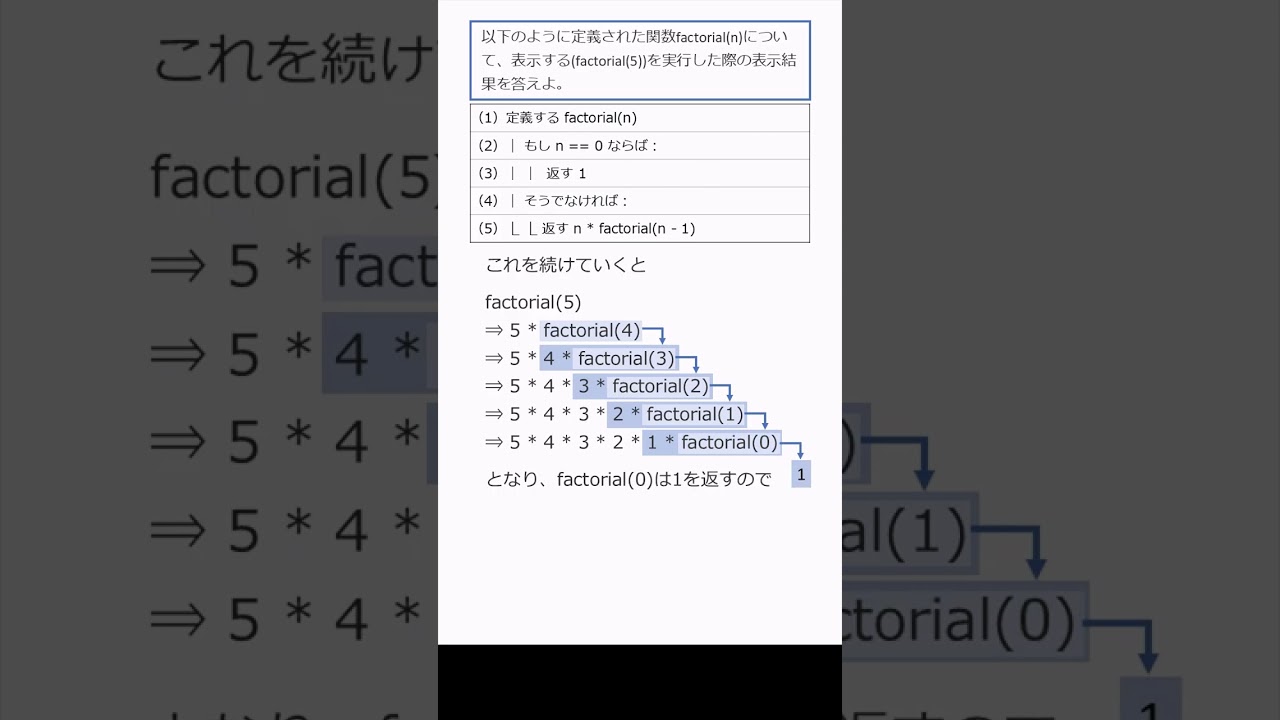 321 再帰関数で階乗を計算する:自分自身を呼び出す関数 #shorts