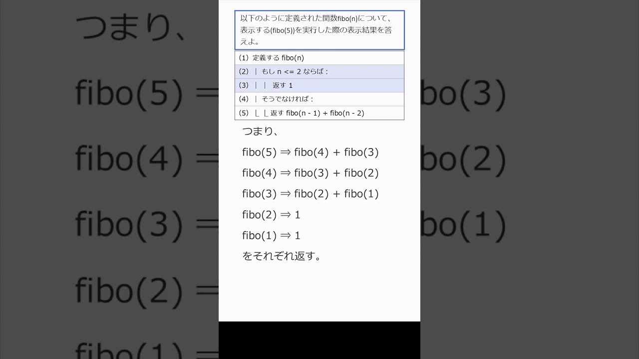 322 再帰関数でフィボナッチ数列を計算する:少し複雑な再帰関数 #shorts