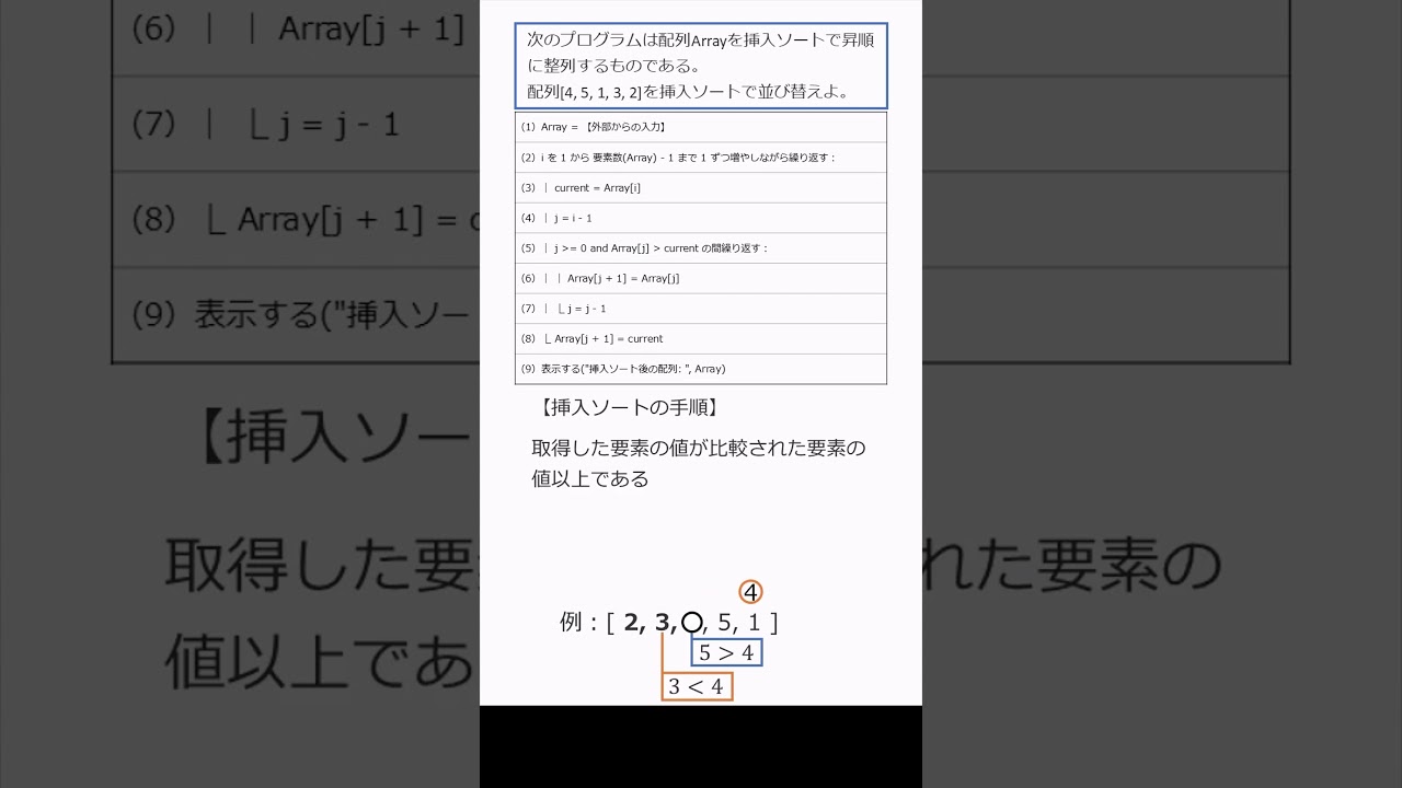 312 2 挿入ソートのプログラム:条件の否定をうまく作ろう! #shorts
