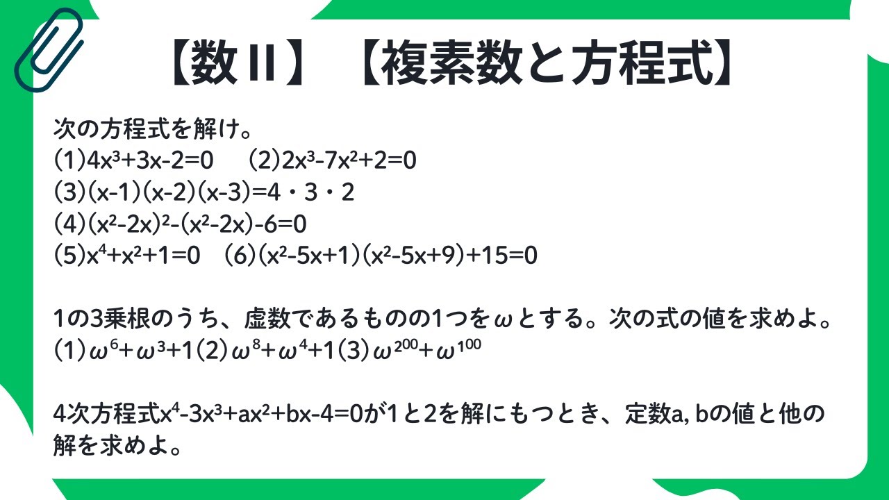 【数Ⅱ】【複素数と方程式】高次方程式2 ※問題文は概要欄