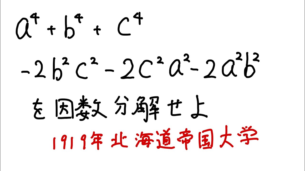 $a^4+b^4+c^4-2b^2c^2-2c^2a^2-2a^2b^2$を因数分解せよ.