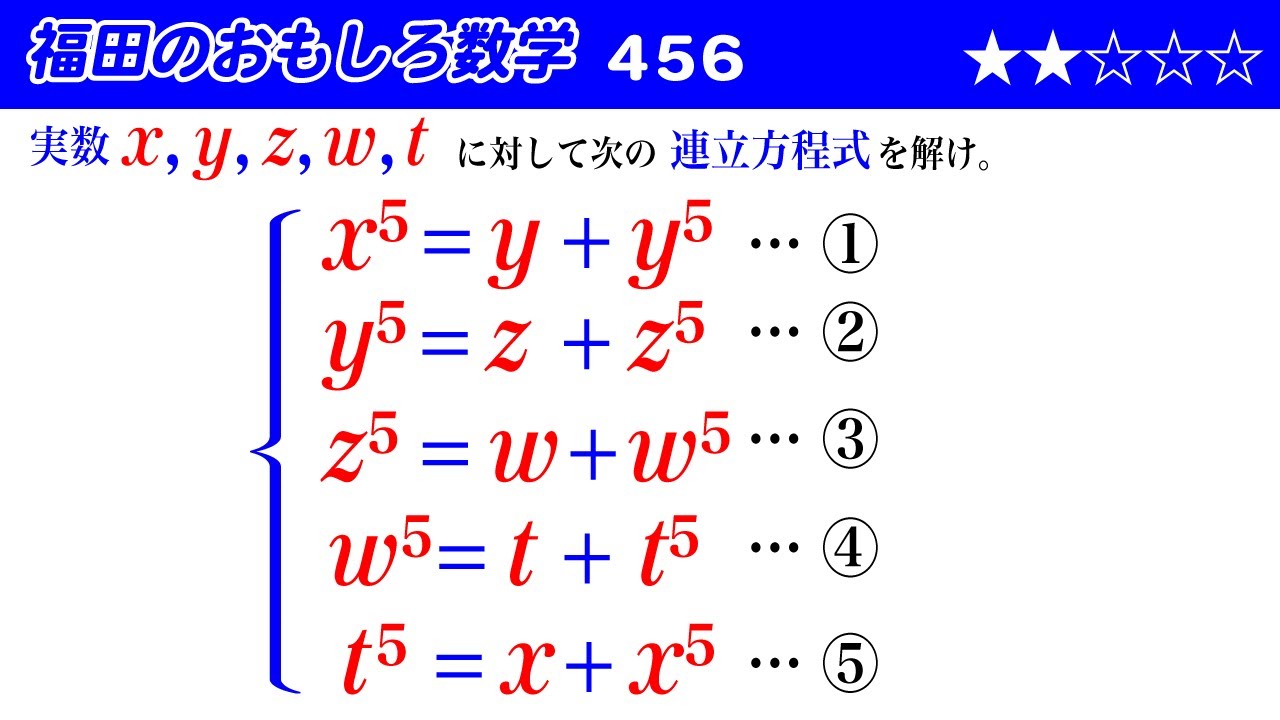 福田のおもしろ数学473〜難しい連立方程式を解くための飛び道具