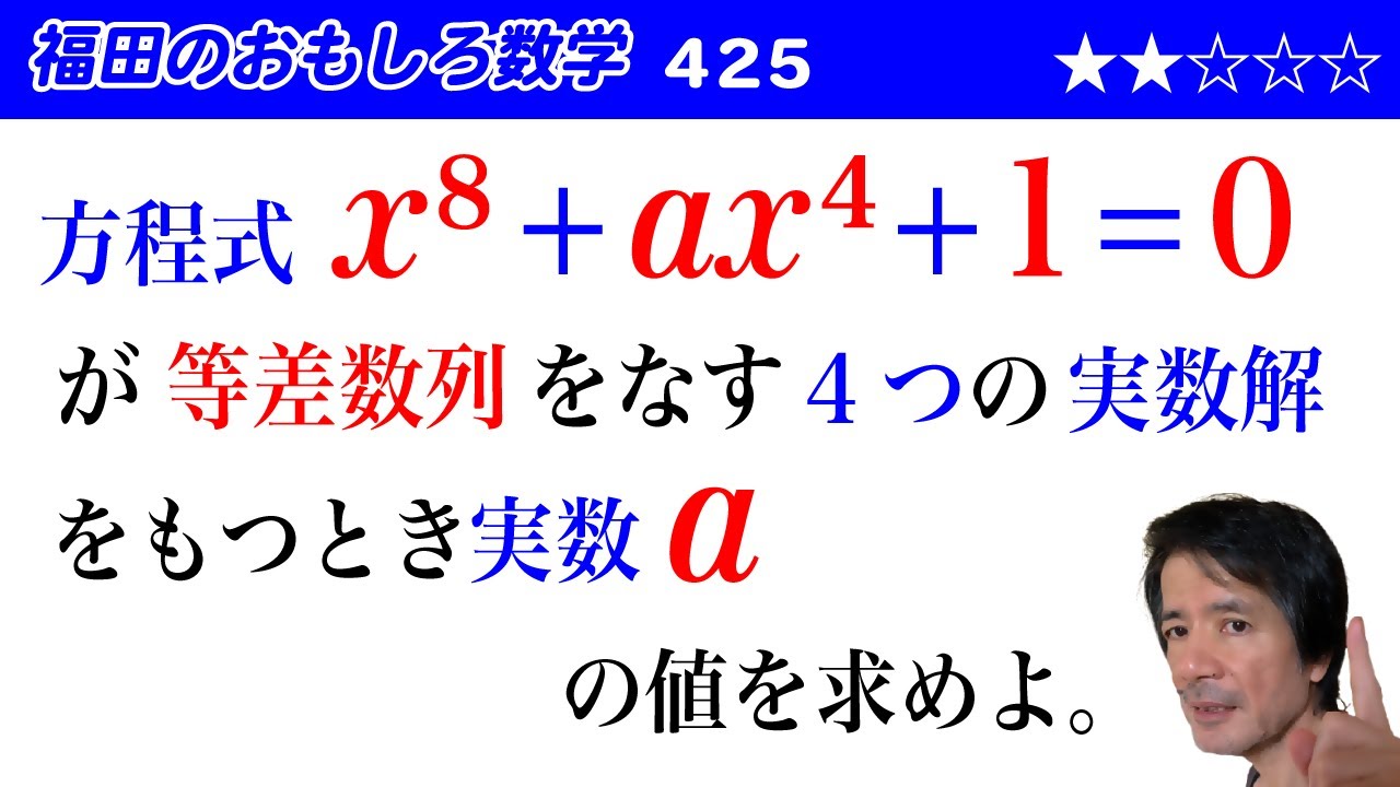 福田のおもしろ数学425〜8次方程式が等差数列をなす4つの実数解をもつ条件