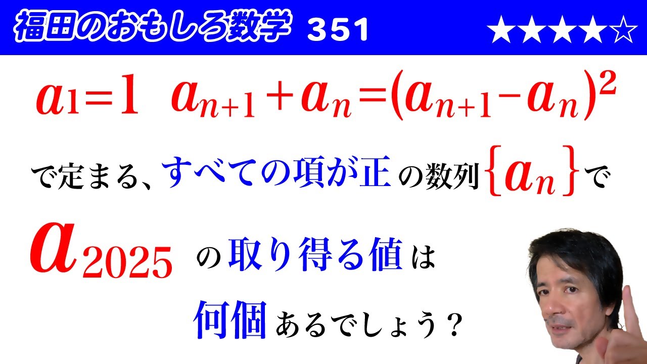 福田の数学〜早稲田大学2025社会科学部第2問〜階差数列