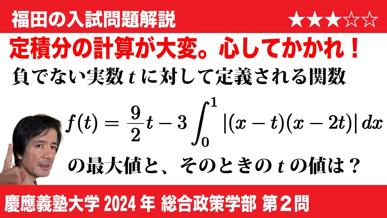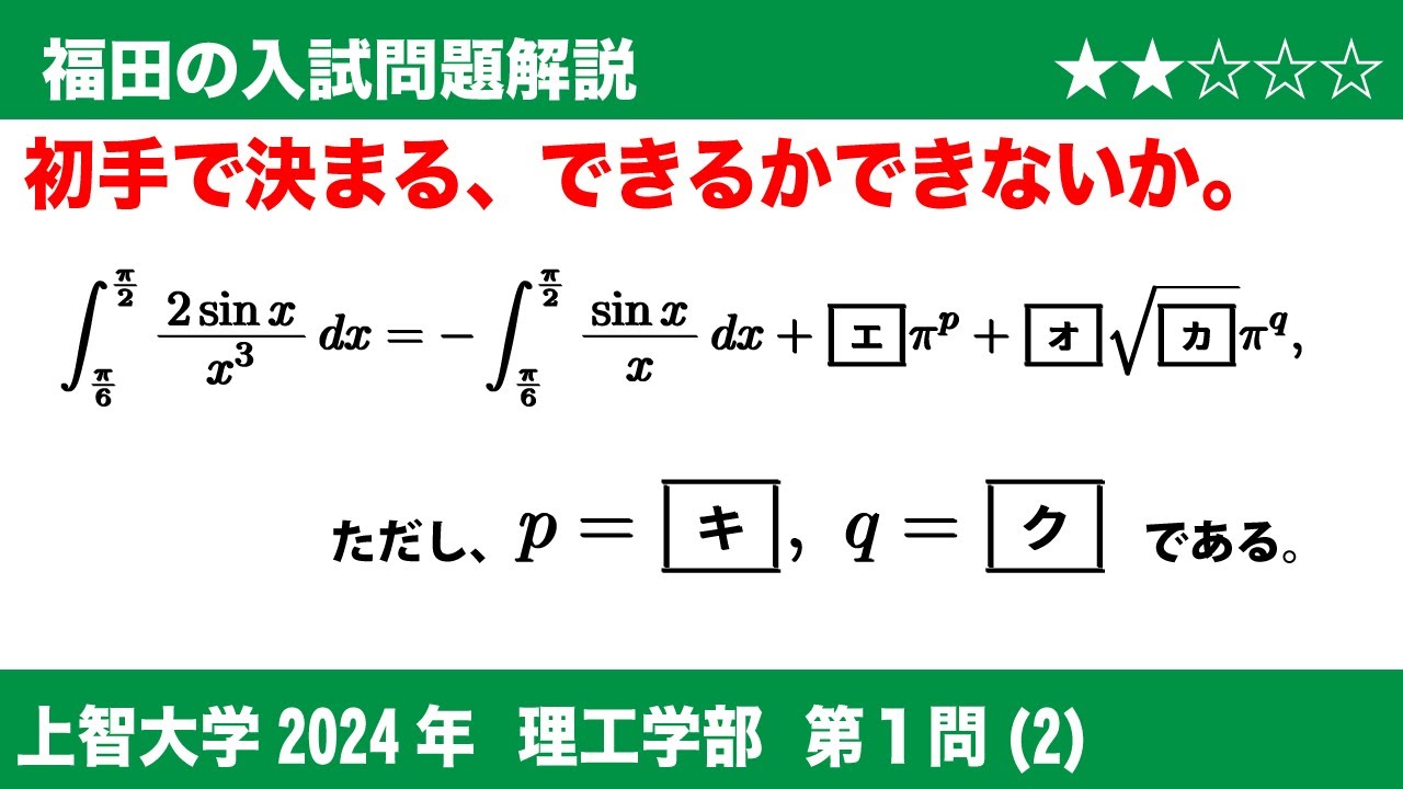 福田の数学〜京都大学2025理系第1問(2−2)〜定積分の計算