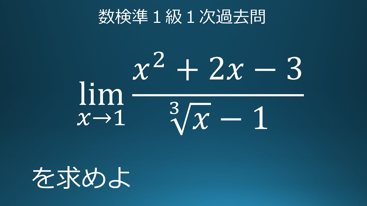 $\displaystyle \lim_{x\to 1}\dfrac{x^2+2x-3}{\sqrt[3]x-1}$を求めよ.